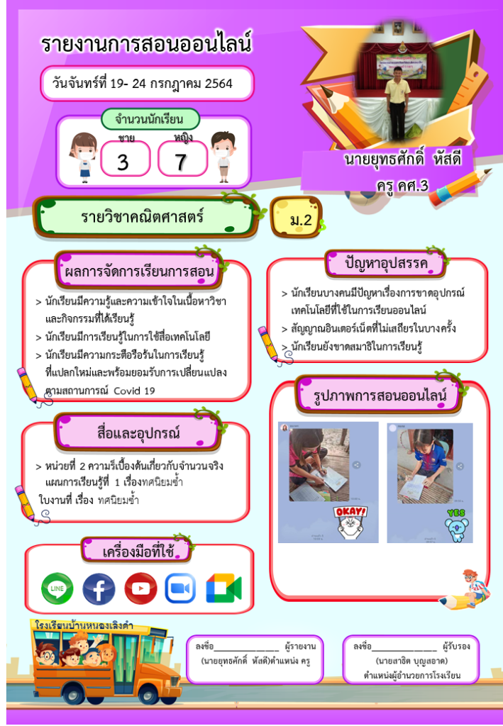 รายงานการจัดการเรียนการสอนออนไลน์ คุณครูยุทธศักดิ์ หัสดี 6 ส.ค. 2021adminผลงานครู เข้าชม : 858 Facebook iconShare to FacebookTwitter iconShare to TwitterLINE iconShare to Line